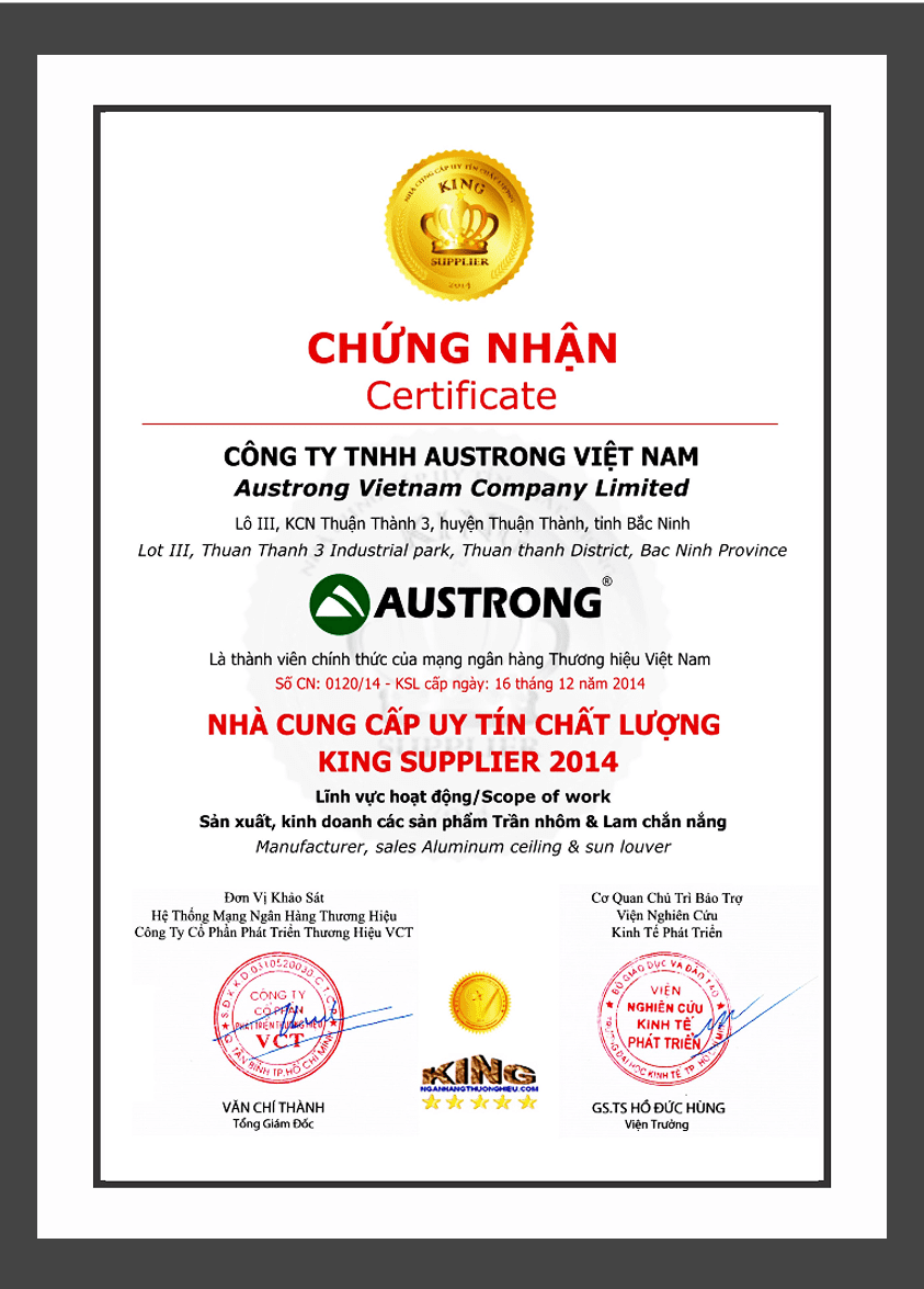 Ra đời từ đầu những năm 1998, với mục tiêu đáp ứng thực tế nhu cầu của thị trường vật liệu xây dựng Việt Nam. Trải qua gần 30 năm phát triển, với tầm nhìn dài hạn cùng bề dày kinh nghiệm Austrong Group đã trở thành đơn vị thiết kế, chế tạo, sản xuất và cung cấp các giải pháp kiến trúc từ kim loại tấm lớn hàng đầu tại Việt Nam.
